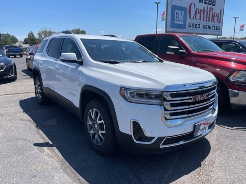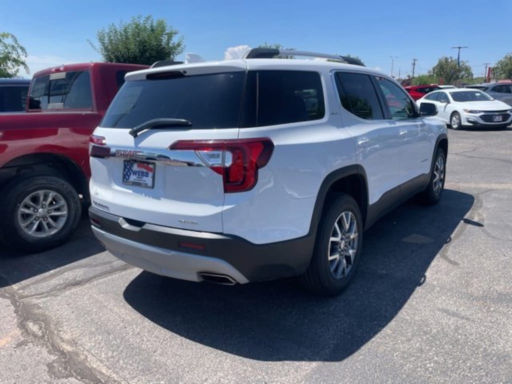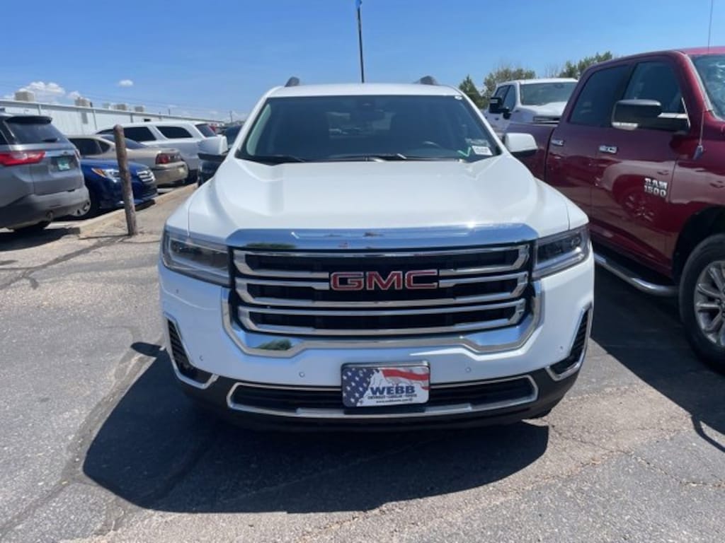 CARFAX One-Owner. Certified. Summit White 2023 GMC Acadia SLT AWD 9-Speed Automatic 2.0L Turbocharged AWD, Black Leather.