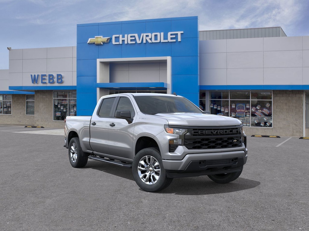 Sterling Gray Metallic 2026 Chevrolet Silverado 1500 Custom 4WD 8-Speed Automatic 2.7L I4 Turbocharged DOHC 16V LEV3-SULEV30 310hp 8-Speed Automatic, 4WD, Black Cloth.