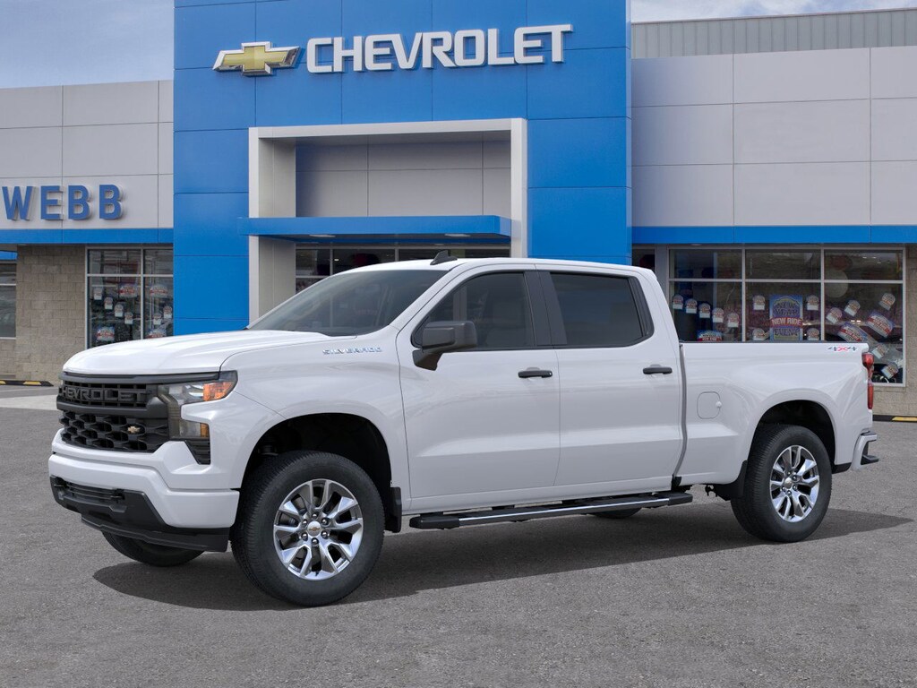 Summit White 2026 Chevrolet Silverado 1500 Custom 4WD 8-Speed Automatic 2.7L I4 Turbocharged DOHC 16V LEV3-SULEV30 310hp 8-Speed Automatic, 4WD, Jet Black Cloth.