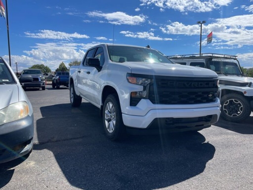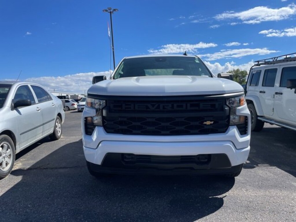 Clean CARFAX. Summit White 2023 Chevrolet Silverado 1500 Custom 4WD 8-Speed Automatic 2.7L Turbo 8-Speed Automatic, 4WD, Black Cloth.